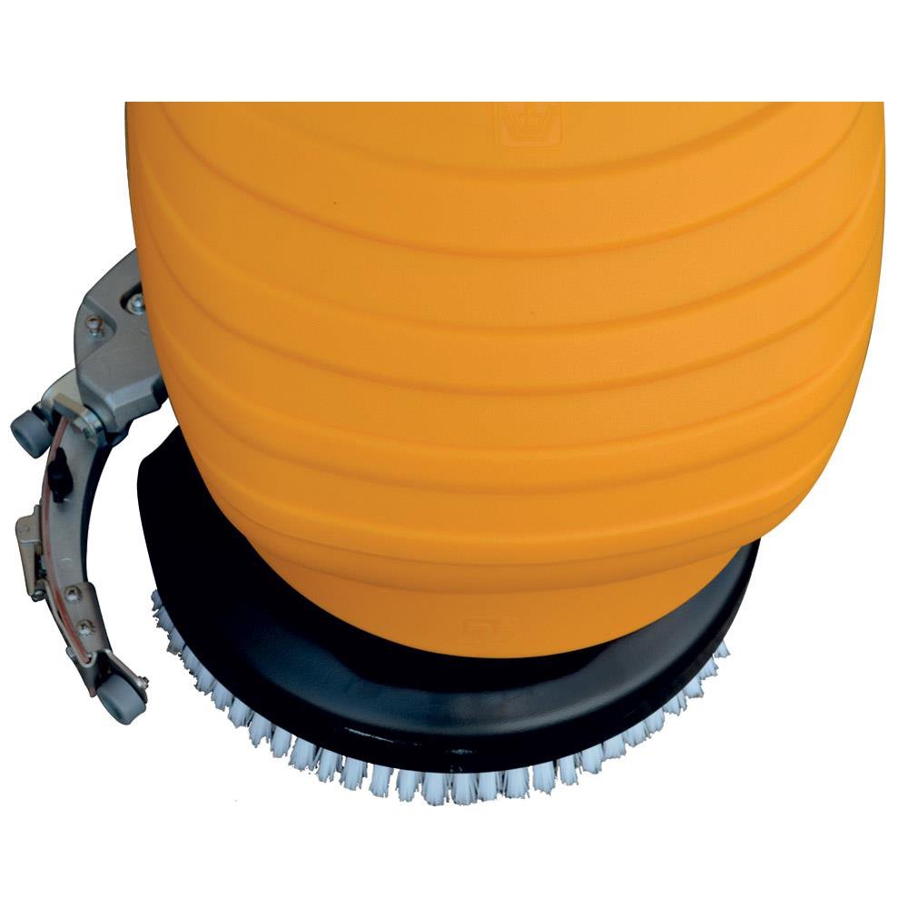 Featuring a 33cm cleaning width and a 410mm squeegee working width, this scrubber delivers a brush pressure of 25 kg and a brush speed of 170 rpm for effective dirt removal on various floor surfaces.